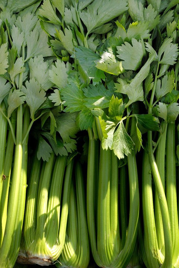 Snack on celery with hummus, add it to soups, or juice it with lemon and cucumber. Celery’s organic sodium content nourishes the stomach wall lining to produce digestive enzymes and hydrochloride acid. 1 litre of celery juice per day gets the digestive juices flowing and reduces bloating.